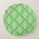 Moderna almohada de tiro redondo con damasco blanco y verde brillante. Ideal para realzar tu colorido estilo de decoración. Personalice este diseño fresco y moderno añadiendo su monograma inicial.