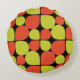 Esta almohada redonda presenta un pétalo de flores abstracto o lágrimas en colores retro contemporáneos de naranja y verde vivos, basados en motivos similares de mediados del siglo XX Moderno de los años 1950, 1960 e incluso de principios de los años 70.
