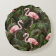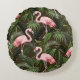 Cojín Redondo Patrón sin foco con flamingo y hojas tropicales