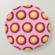 Patrón inmaculado de flor perdurable con pétalos rosados profundos y disco amarillo impreso en almohada de lanzamiento redondo. almohada de diseño floral para los amantes de las flores y para añadir la belleza de la naturaleza en su silla, sofá, sofá, dormitorio o salón. También se puede dar como regalo.