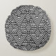 Patrón transparente de triángulo de Art Deco blanco y negro sobre almohada redonda.