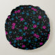Cojín Redondo Patrón sin foco Flores azul rosadas, hojas verdes