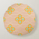 Hexagonal floral pattern with blue-green centers and orange outlines on a peach background. White lines connect the shapes, creating a geometric grid.