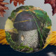 "Sólo la naturaleza es antigua, y el arte más antiguo es un hongo". - Almohada redonda con temática de la naturaleza Thomas Carlyle que presenta una foto de un pequeño hongo con hojas amarillas para los amantes de los bosques y los aficionados al forraje. Funcionará especialmente bien con el estilo rústico y rústico de decoración.