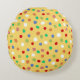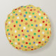 Los numerosos puntos coloridos de este diseño se aprecian en el fondo amarillo pálido.