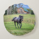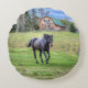 Cojín Redondo Percheron negro candelabro de equino de caballo fo