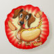 Caricatura de perro de Dachshund con aspecto un poco confuso y asombrado, con la lengua fuera, y con grandes ojos sorprendidos porque se da cuenta de que es...¡hot dog Sausage! Ilustracion de imágenes de vídeo aislado en blanco. Copyright BluedarkArt.