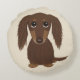 Cojín Redondo Perro Dachshund Chocolate Brown lindo de pelo larg
