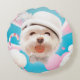 Cojín Redondo Perro esponjoso con Gorra blanco