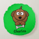 Cojín Redondo Perro marrón con hueso personalizado en verde
