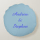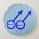 Esta impresionante almohada redonda está diseñada para hombres homosexuales. Presenta dos símbolos masculinos azules uno al lado del otro. El fondo es azul y hay un texto azul personalizable dentro de cada uno de los símbolos para poner nombres.