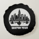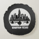 Un ilustracion minimalista y elegante en blanco y negro del horizonte de Houston, con varios rascacielos altos y una silueta de un parque debajo. El conjunto está limpio y es moderno, con una arquitectura emblemática de la ciudad.