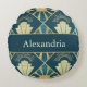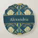 Cojín Redondo Personalized Art Deco Teal & Gold Geometric Name
