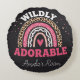 Add a wildly adorable touch to your little girl's room! This chic round pillow features a cute boho leopard rainbow on the front and a custom monogram on a trendy leopard print back. Perfect for safari nursery decor, wild one themes, or a unique baby shower gift. Customize the name and initial today!