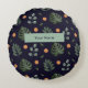 Cojín Redondo Personalized Custom Name Navy Botanical