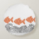 Pescado y olas arrojan almohada. Los peces se representan en un suave naranja de terracota y están decorados con un delicado patrón floral, añadiendo un toque caprichoso de inspiración japonesa. Las olas de abajo están ilustradas con líneas negras finas en un estilo tradicional de carpintería,