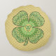 Este clásico trébol de cuatro hojas sobrepone un diseño de círculo concéntrico con capas de tejas celtas en múltiples tonalidades de verde con un poco de naranja para el acento.