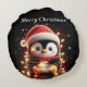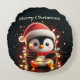Cojín Redondo Pingüino lindo envuelto en luces Navidades