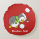Cojín Redondo Pingüino navidad recibiendo bola de nieve
