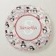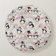 Cojín Redondo Pingüinos de Navidad Lindos Monograma Personalizad