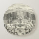 Cojín Redondo Pintura al óleo de fuentes en el jardín de