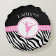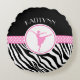 Almohada redonda del estampado de zebra de la danza salvaje de la bailarina en rosa. Una silueta del bailarín de ballet presenta dentro de un círculo y hay una bandera del "lunar" para el contraste. ¡Añada su propio nombre antes de ordenar! ¡Además, utilice el "personalizar él" botón para más opciones, incluyendo una diversa fuente!