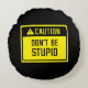 Cojín Redondo Precaución, no seas Rótulo estúpido