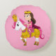Cojín decorativo con un ilustracion de una princesa feliz con un vestido rosa montando un pony, un regalo agradable para las niñas y una gran decoración para una guardería o una habitación de chica