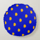 Esta almohada muestra un patrón de pequeños pinceladas naranja redondeadas de pincel amarillo de pinceladas de polka de fondo azul.