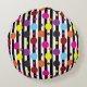 Puntos y rayas. Coloridos puntos de polka y almohada redonda de rayas blancas y negras.