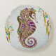 Cojín Redondo Purpurina de caballitos de mar con arco iris de ve