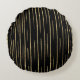 Oro purpurina y patrón rayado negro Almohada redonda.