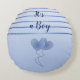 El Round Cushion presenta rayas azules de fondo azul claro. Personalizar el texto y la imagen con la tuya.