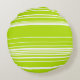 Cojín Redondo Rayas complejas en verde limón y blanco