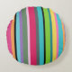 Hay rayas vibrantes en tonos rosas, rojos, amarillos, verdes, violetas, negros, naranjas, turquesas y mucho más que adornan esta almohada colorida.