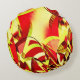 Cojín Redondo Razas amarillas sobre la imagen roja, con llovizna