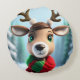 Escena de invierno con un lindo reno vistiendo una bufanda.
