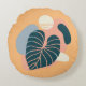 Almohada redonda tropical amarilla y azul. Esta es la combinación perfecta para su decoración diaria. Este diseño presenta un fondo amarillo sólido en ambos lados. El frente se acentúa con un diseño tropical de hojas abstractas. Visite nuestra tienda para coordinar accesorios.