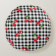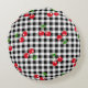 Cojín Redondo Retro Cherry Gingham Cute Red & Black Checkered