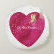 Cojín Redondo Romantic Pink Watercolor Heart & Gold Butterfly