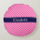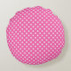 Cojín Redondo Rosa Brillante #2 Lunares Blancos Azul Marino Mono