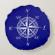 Cojín Redondo Rosa de la brújula azul y blanca de la marina