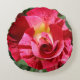 Hermosa rosa roja y rosa floreciente con hojas verdes oscuras como fondo.
