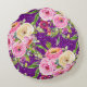 Cojín Redondo Rosas acuarelas en Purpurina rosa y morado crema