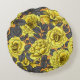 Cojín Redondo Rosas amarillas con hojas grises en naranja