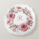 Cojín Redondo Rosas rosadas iniciales de monograma y follaje en