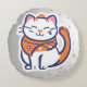 Un felino esmoquin blanco y rosa muy feliz Almohada redonda Este adorable dibujo de un animal muestra un gato esmoquin blanco y rosa con una bufanda marrón claro riéndose y muy feliz. Con un fondo gris claro rodeado de estrellas de diferentes colores. ¡Hace un gran cumpleaños, Navidades u otro regalo para los niños y los amantes del gato!
