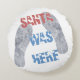 Santa Estaba Aquí texto rosa y azul y dos huellas de pies en la nieve fresca. Navidades divertidos: impresiones de Navidad, regalos y camisetas para diversión, humor y buen humor