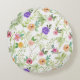 Esta almohada redondeada de estilo Shabby Chic Floral tiene flores rosas, flores amarillas, flores púrpuras y flores rojas en un campo de hojas verdes.
