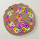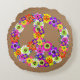 Un símbolo de paz floral en tonos rosa, amarillo, naranja, violeta, verde, blanco y negro.